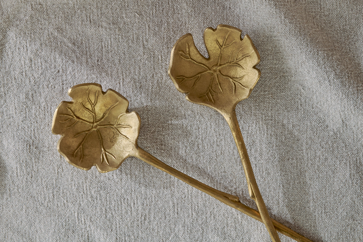 • Prakriti Leaf Salad Servers - Brushed Gold (Set of 2)