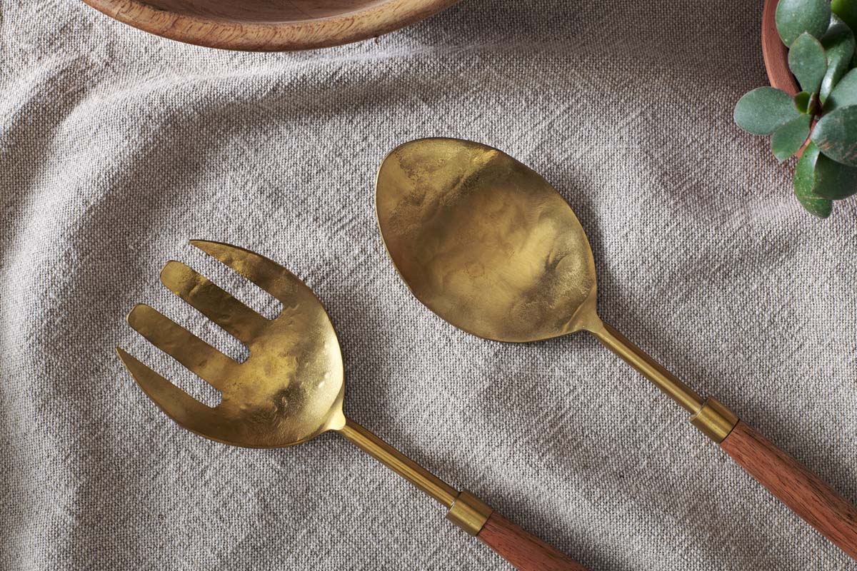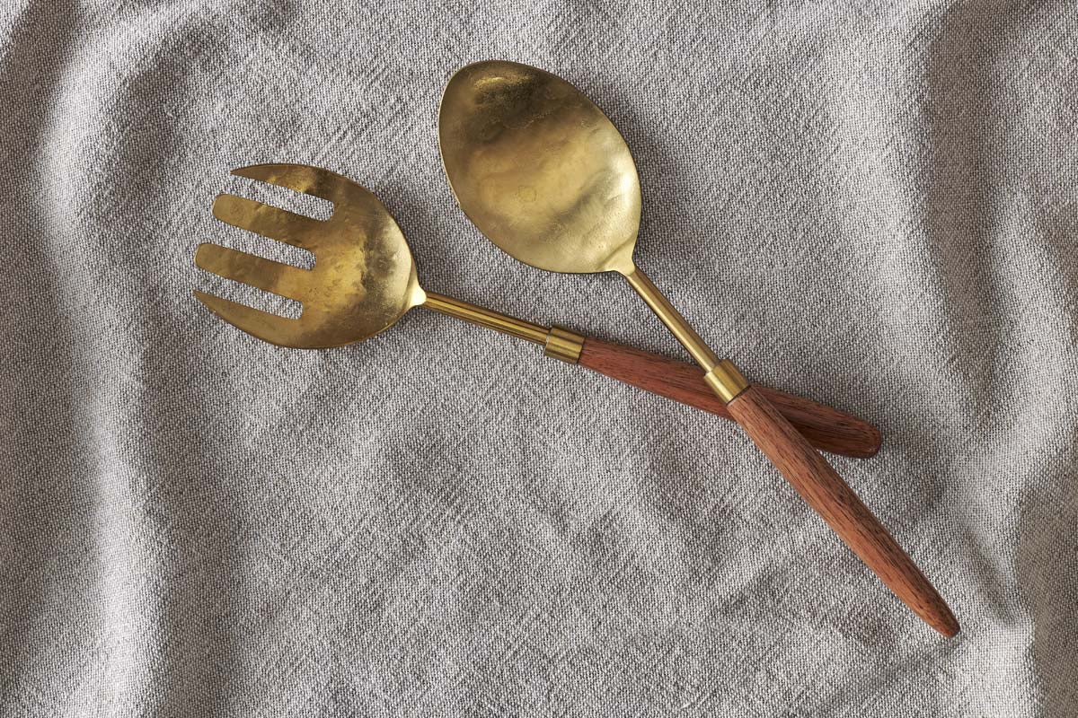 Soni Salad Servers - Gold & Acacia (Set of 2)
